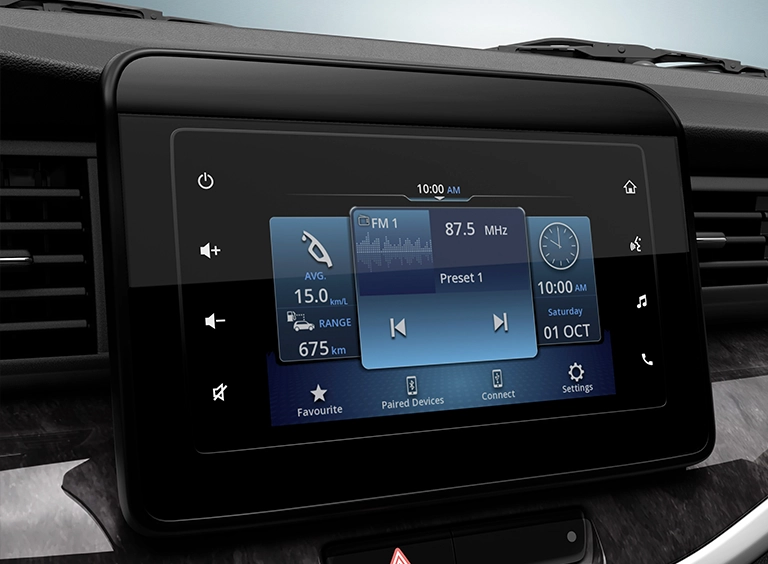 - Pantalla 7” a color touch screen vínculo con smartphones (Apple CarPlay y Android Auto TM)